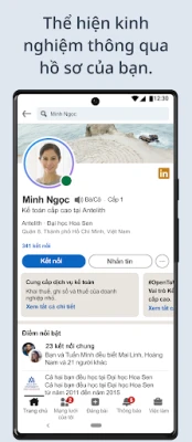 Mở rộng mạng lưới quan hệ và hòa mình vào cộng đồng chuyên gia hàng đầu thế giới thông qua LinkedIn. Đây là không gian lý tưởng để bạn kết nối với các đồng nghiệp, đối tác tiềm năng và các công ty danh tiếng, xây dựng cầu nối cho sự hợp tác và phát triển. Tham gia vào các cuộc đối thoại ý nghĩa, trao đổi kiến thức chuyên môn, và cập nhật những quan điểm tiên phong từ các nhà lãnh đạo ngành. Việc này không chỉ giúp bạn mở rộng tầm ảnh hưởng mà còn mang lại những thông tin giá trị, thúc đẩy sự nghiệp tiến xa hơn.