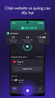 Tất cả người dùng đều có thể trải nghiệm các tính năng VPN miễn phí thiết yếu. Bạn sẽ được truy cập dữ liệu không giới hạn, vượt qua các rào cản địa lý nhờ công nghệ lựa chọn giao thức thông minh giúp mở khóa truy cập vào trang web bị chặn hoặc nội dung bị kiểm duyệt. **Proton VPN** còn cung cấp tùy chọn biểu tượng ứng dụng kín đáo để duy trì tính riêng tư trên điện thoại của bạn. Mọi thông tin gửi đi đều được bảo vệ bởi máy chủ mã hóa hoàn toàn, cùng khả năng chống rò rỉ DNS và cơ chế VPN luôn bật/công tắc khẩn cấp, bảo vệ bạn khỏi nguy cơ rò rỉ dữ liệu do kết nối gián đoạn.
