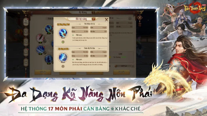 Tân Thiên Long Mobile tái hiện trọn vẹn những địa danh quen thuộc như Lạc Dương, Đại Lý, Tô Châu cùng âm hưởng và cảnh sắc đặc trưng, đưa bạn trở lại với các hoạt động vang bóng một thời: từ Trân Long Kỳ Cuộc trí tuệ, Hoa Sơn Luận Kiếm oai hùng đến Tống Liêu rực lửa. Với 17 môn phái đa dạng – bao gồm Hoa Sơn, Thiên Long, Đường Môn, Tiêu Dao, Võ Đang, Nga Mi – mỗi phái sở hữu hệ thống chiêu thức, vai trò và phong cách chiến đấu riêng biệt, tạo nên sự cân bằng và chiến thuật độc đáo. Tự do xây dựng nhân vật, tinh chỉnh trang bị và kỹ năng để tạo ra những đội hình mạnh mẽ, khai mở vô vàn khả năng trong PvE và PvP cùng các Trân Thú huyền thoại như Đường Lang, Cùng Kỳ.